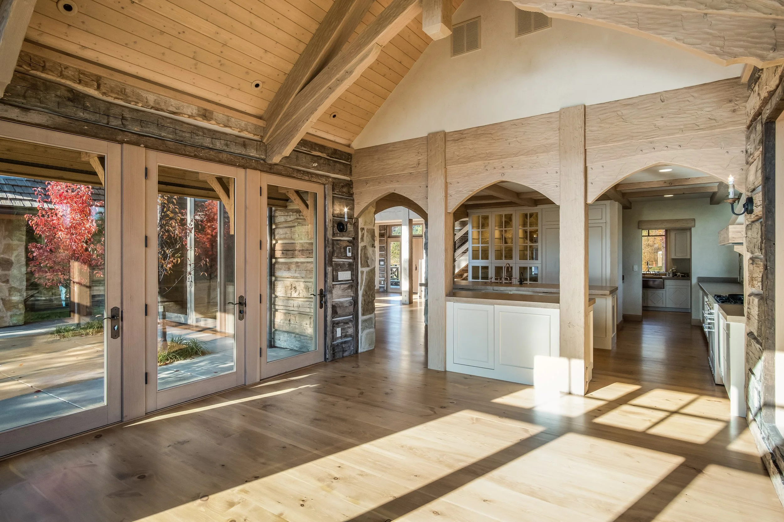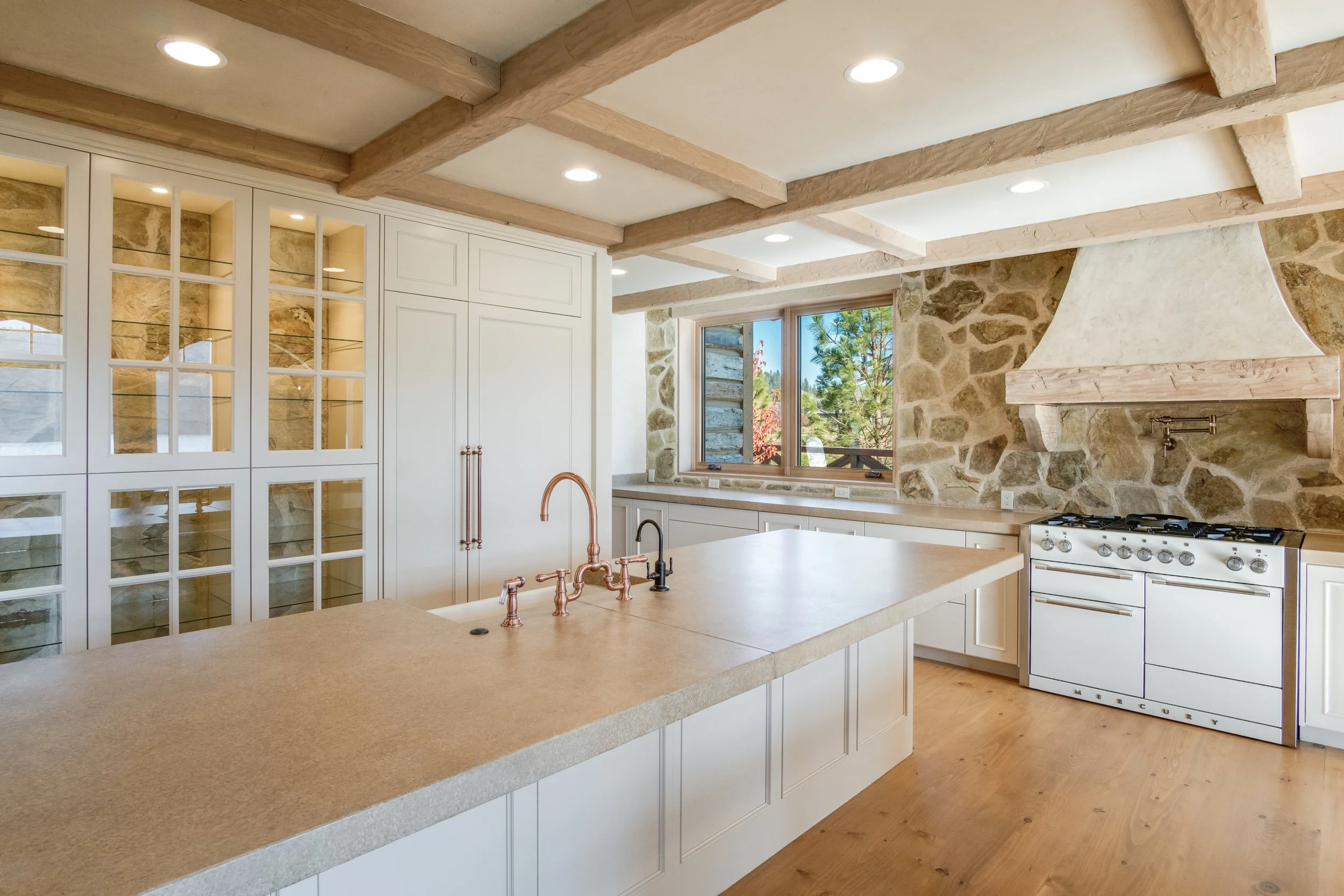 Along the shores of Lake Pend Oreille in the Dover Bay Resort, Idaho, the Dover Bay Waterside Retreat inspires architectural themes of a French cottage and farmhouse-contemporary. The home was designed to interact with and the natural beauty of its surroundings instead of contradicting them, using strategic materials and textures, like the natural wood chink-siding. The home boasts large waterfront viewing areas and ample installments for outdoor enjoyment, including a luxurious entertainment plaza on the property’s east side.