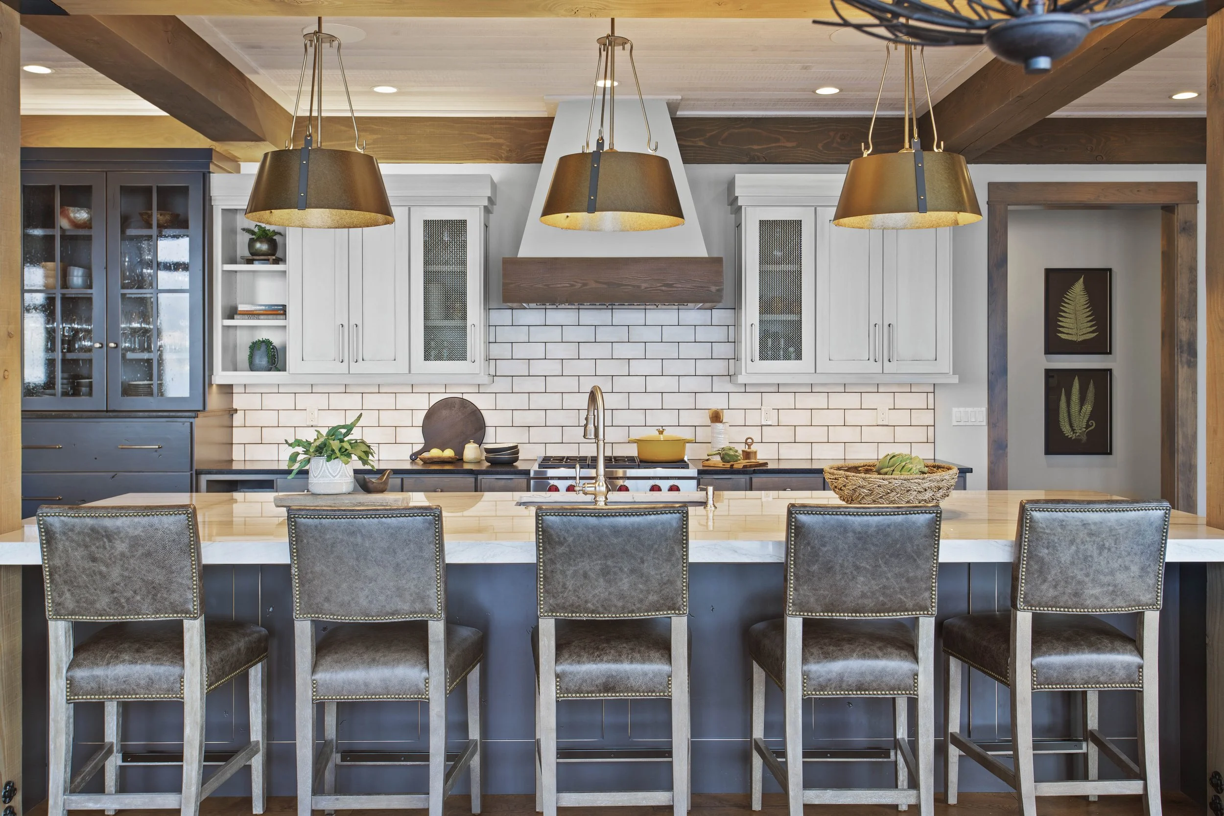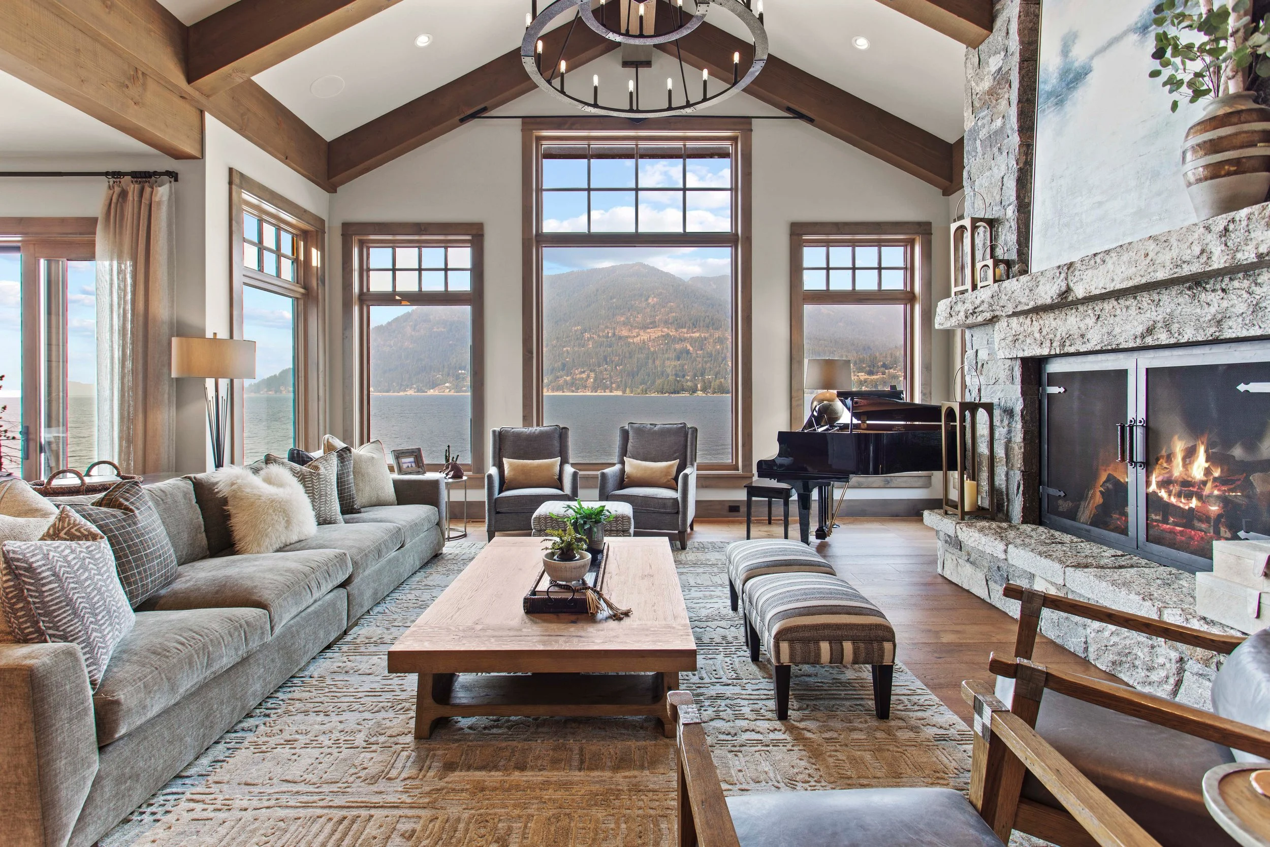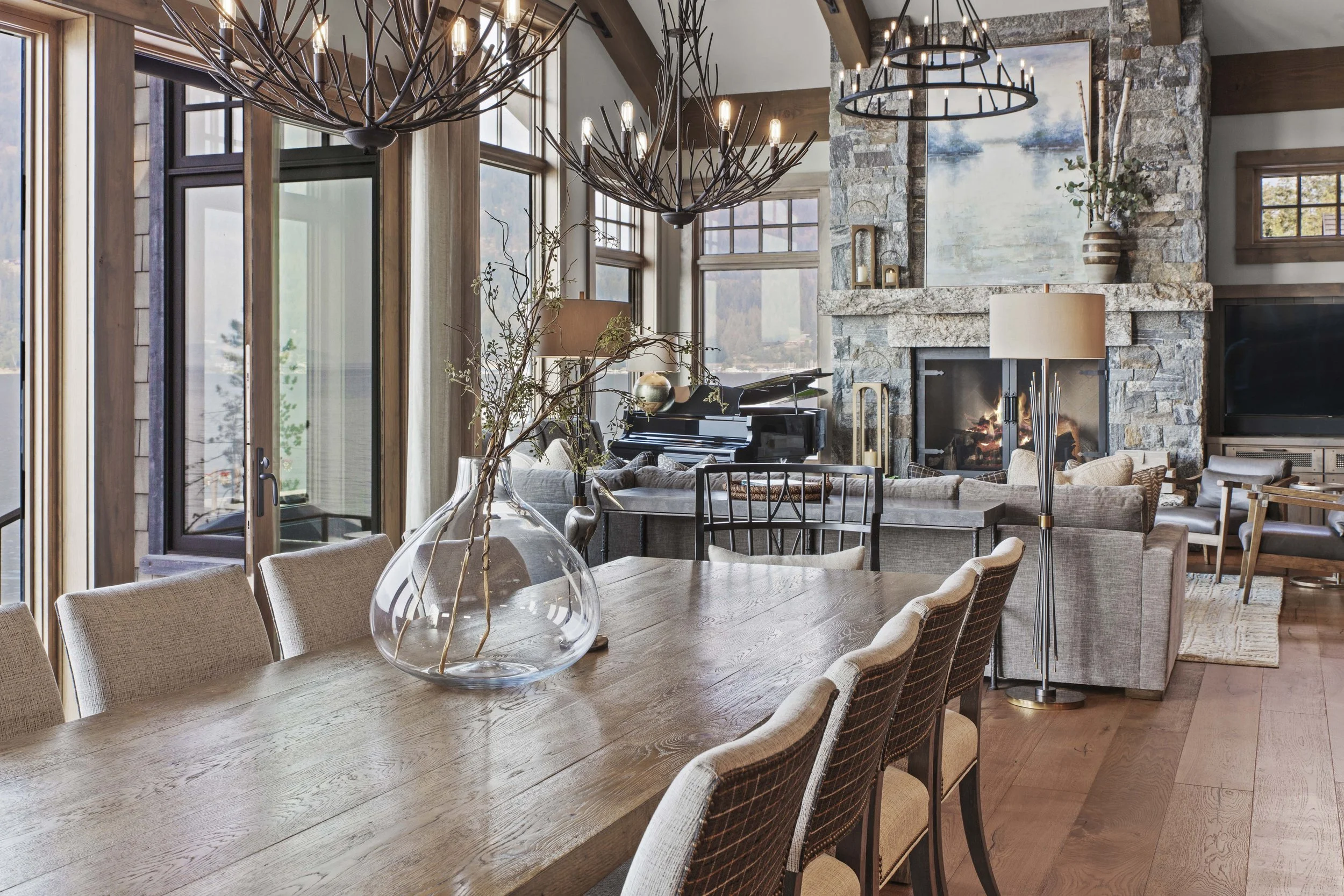 This home is a refined take on the traditional mountain lake retreat, thoughtfully placed to take in views of both Lake Pend Oreille and Schweitzer Mountain. A separate guest cabin is seamlessly integrated into the design, creating a sense of unity with the family home. Natural stone and wood create this mountain home.