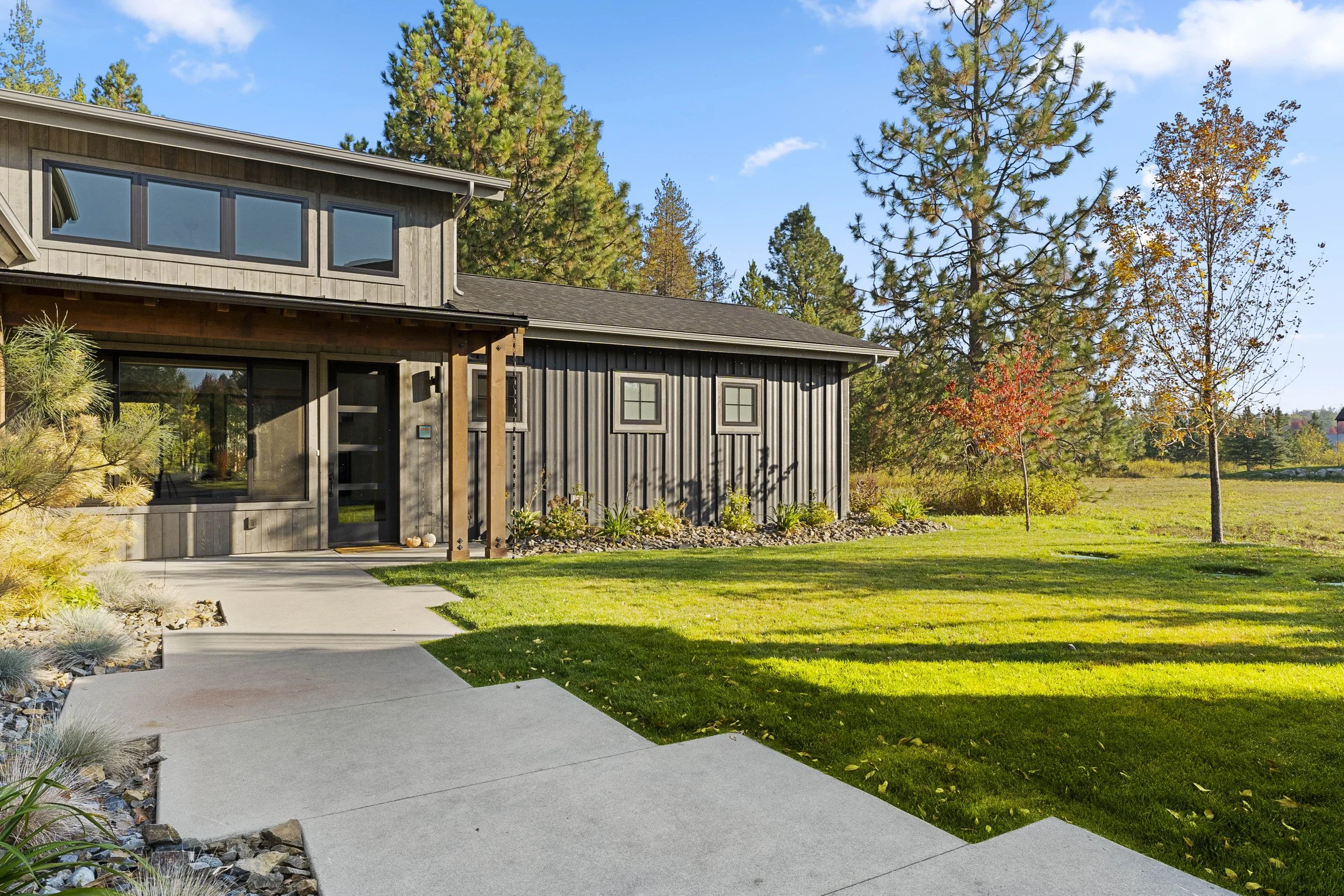 This simple and elegant home was built for local Sandpoint teachers. The home demonstrates how there is so much room for creativity and crafting a personal space within a limited budget. We focused on the small details like the windows to deliver a unique, bold, and cool design.