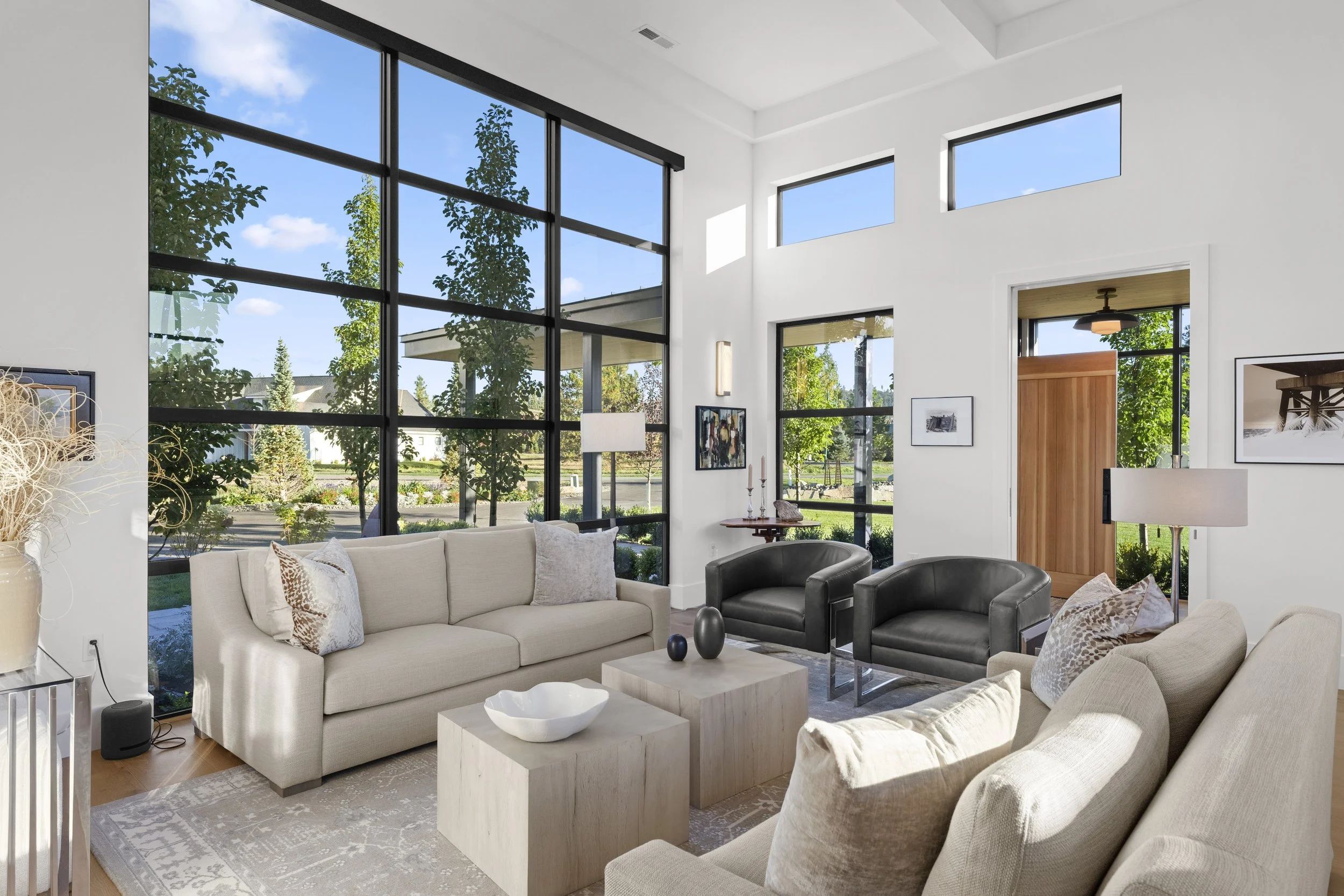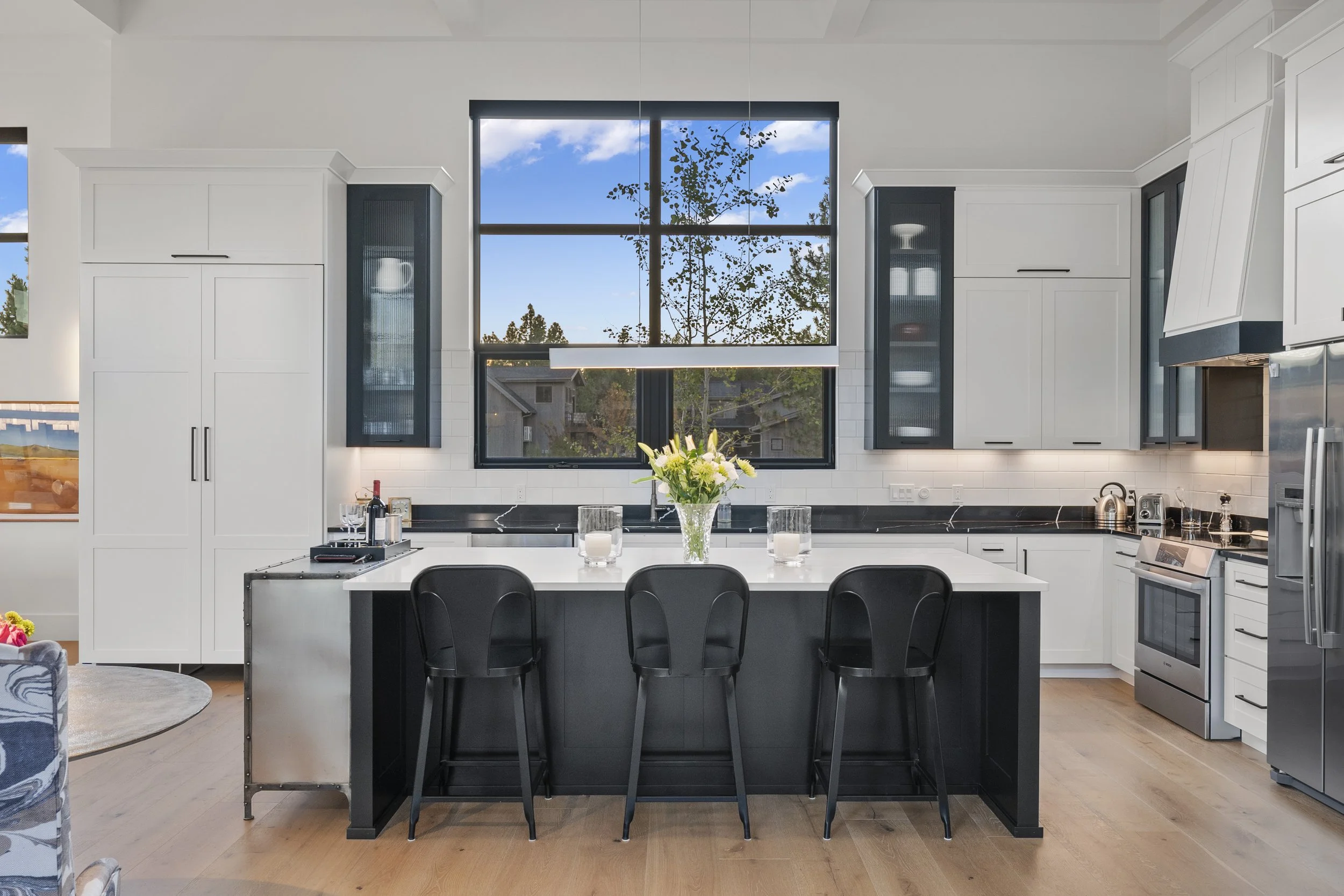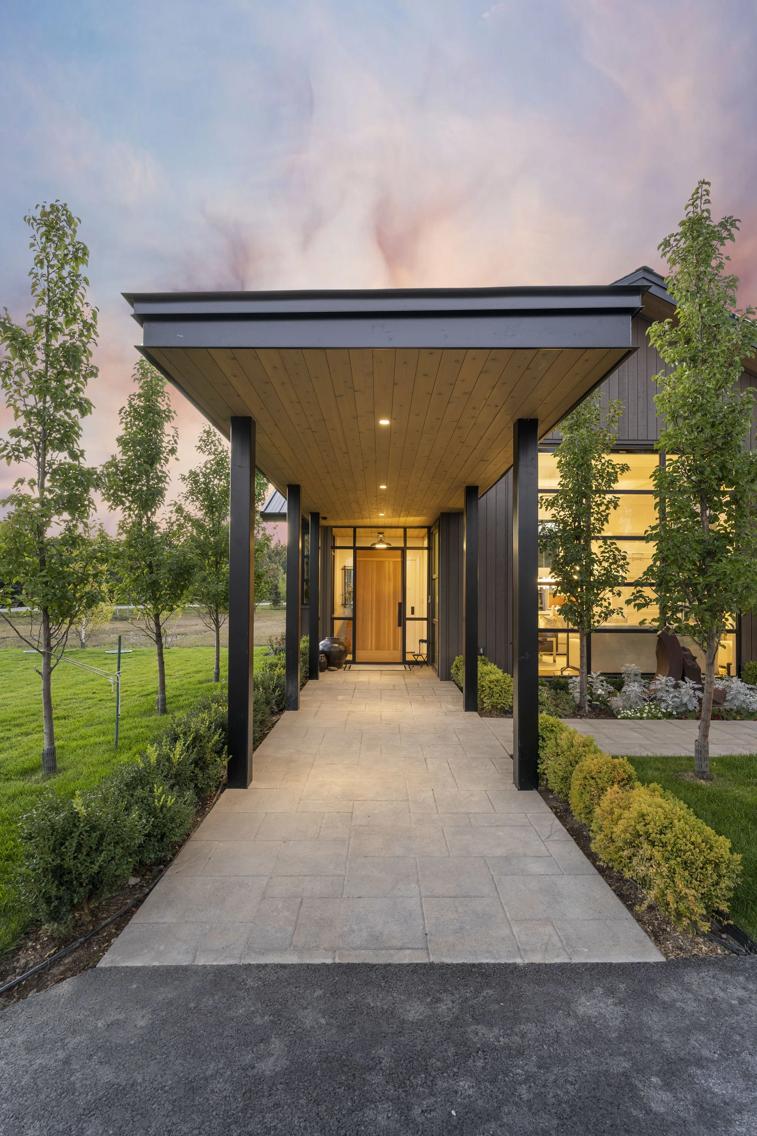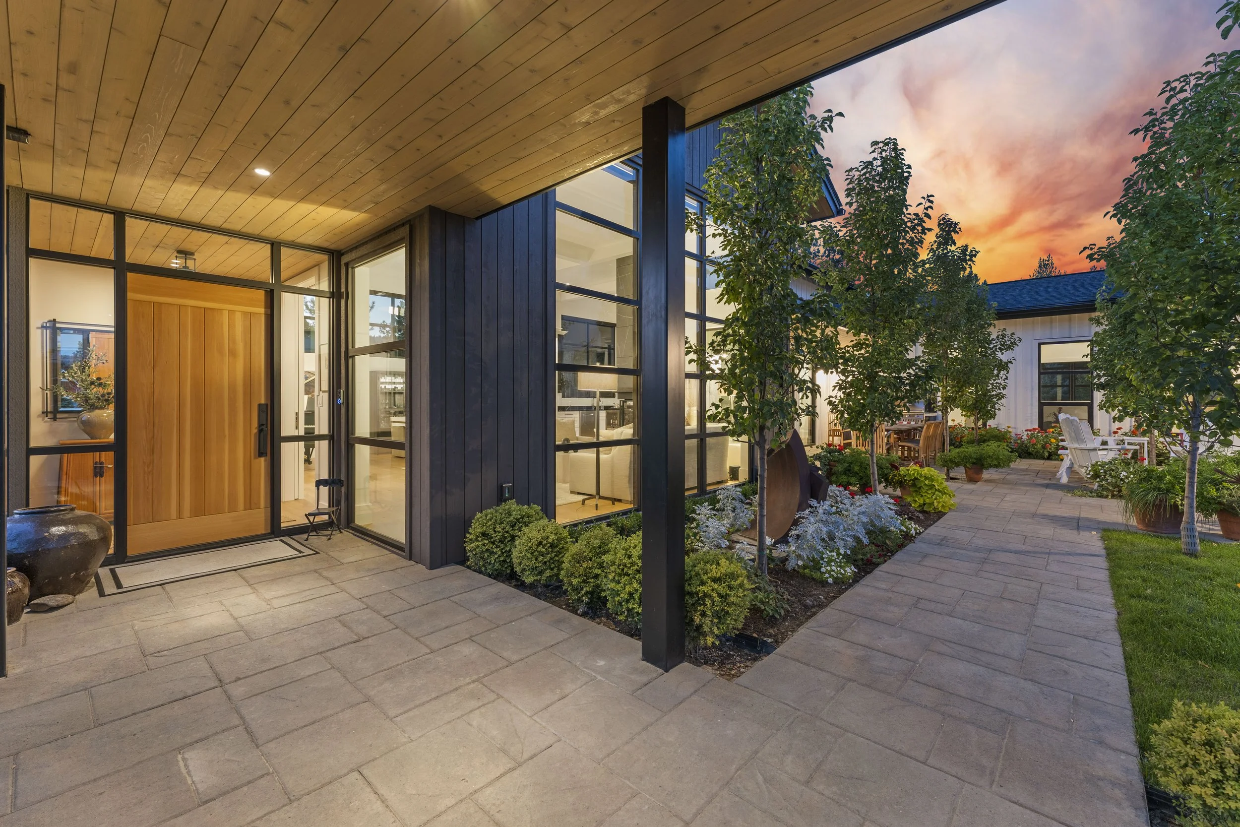This home stands out for us as a twist on the modern farmhouse. The house is built around the central courtyard to create outdoor privacy in an urban area. To modernize the farmhouse idea, we used color and large industrial-style windows that unite the indoor and outdoor into one living space. We designed entrance columns to match the rhythm of trees that line the entryway—demonstrating how traditional styles can be thoughtfully reinterpreted into one-of-a-kind homes that respond uniquely to their environment.